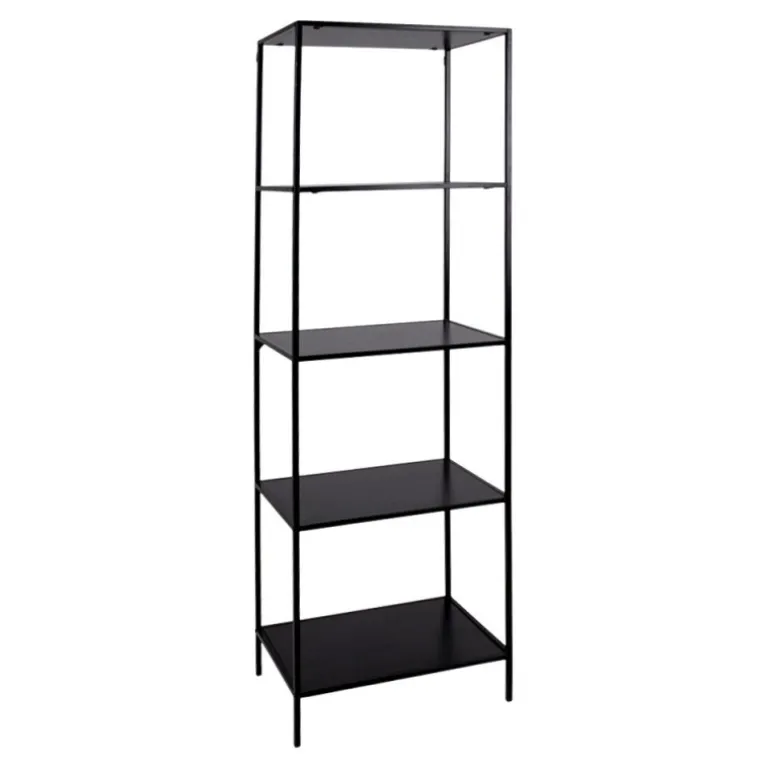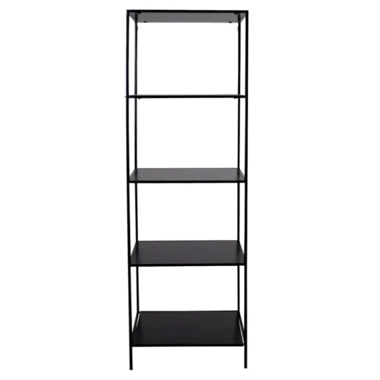 Reol med sort ramme og 5 sorte hylder