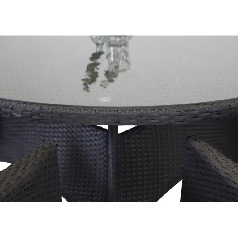 - Holdbart Materiale: Basen og stolene er lavet af holdbart sort kunstig rattan.