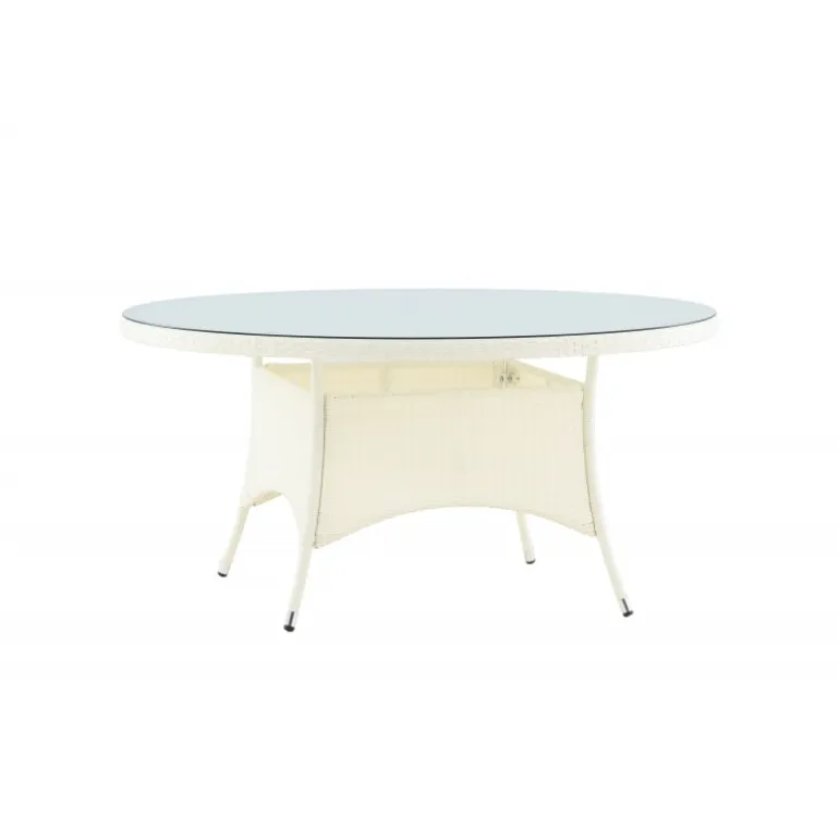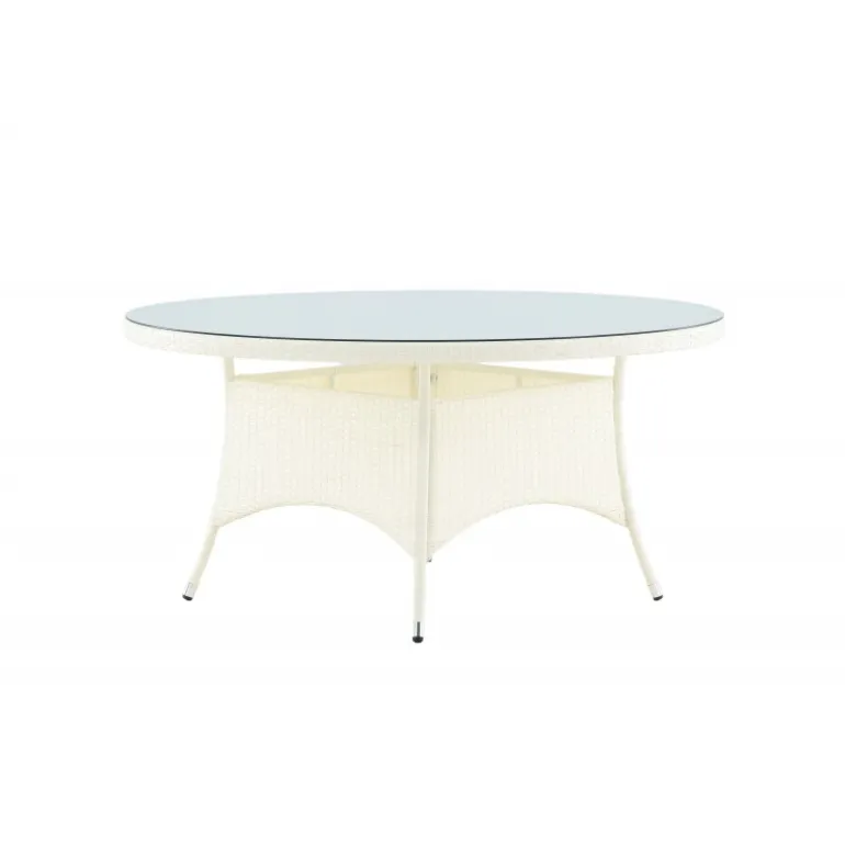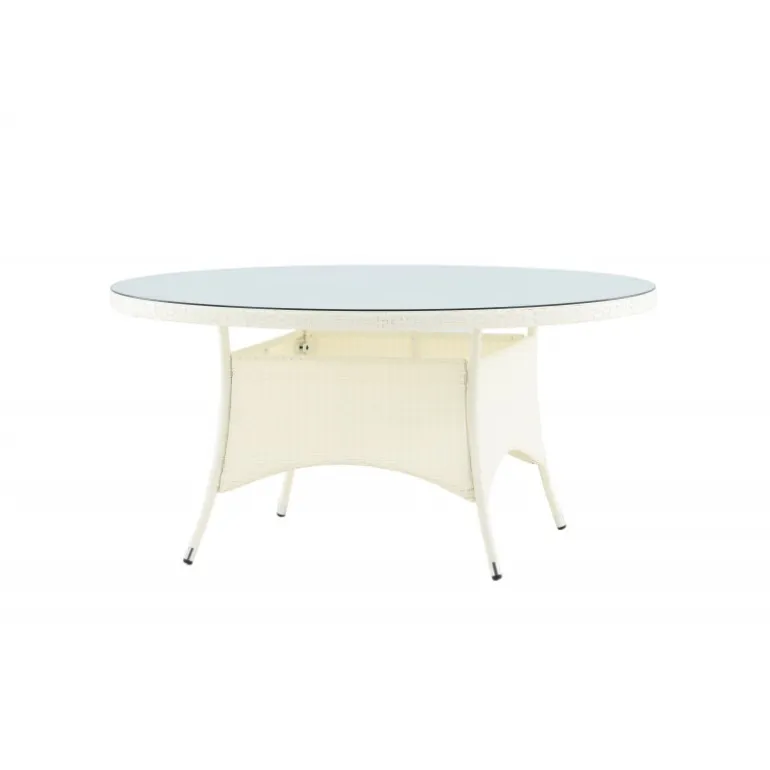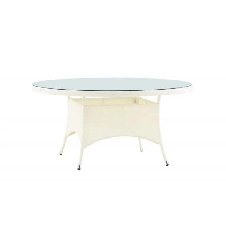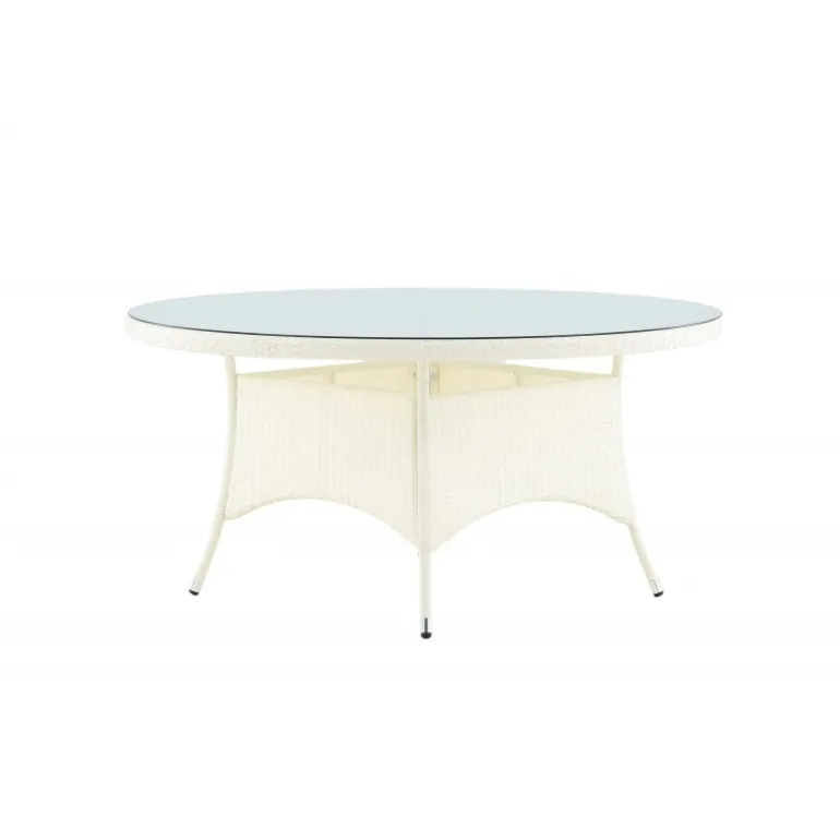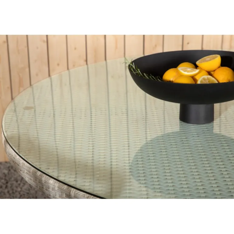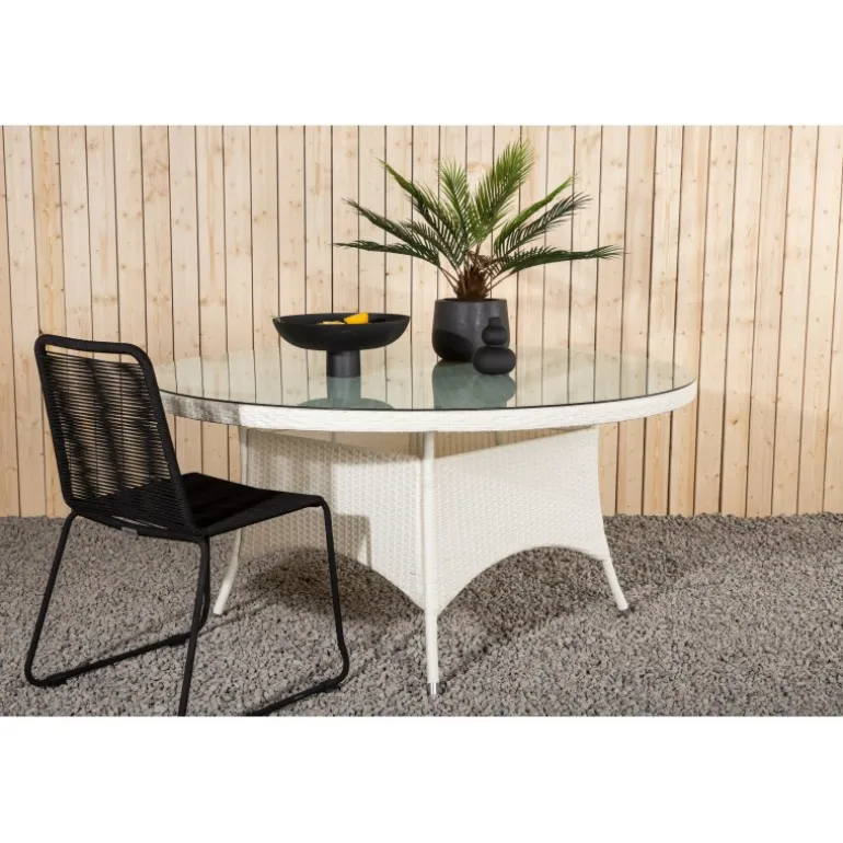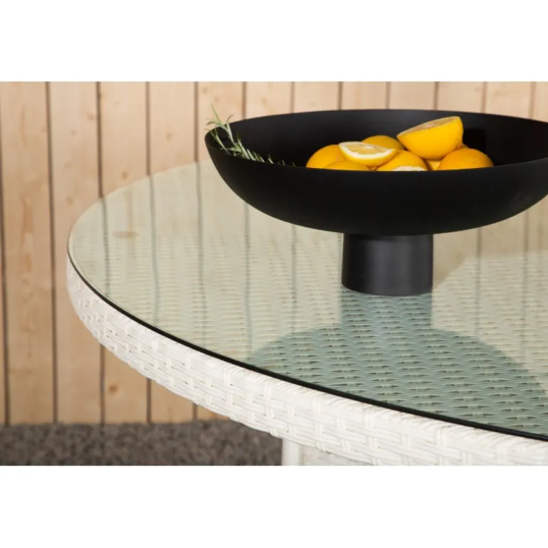 Volta er et rundt spisebord i et robust design, der giver et holdbart og charmerende indtryk! Bordpladen er i stilfuldt glas, og understellet er i holdbar, hvid kunstig rattan. Indret udendørsområdet eller terrassen og lad udendørsmiddagene blive dagens højdepunkt – her ender ingen på kanten! Plejevejledning: Kunstig rattan er et plastmateriale, der er perfekt til vores skandinaviske klima. Materialet er UV-resistent og kan modstå vejr og vind. Det betyder, at møblet ikke falmer, men vi anbefaler altid at opbevare møblet under et møbelovertræk eller på et tørt og køligt sted for at forlænge levetiden.