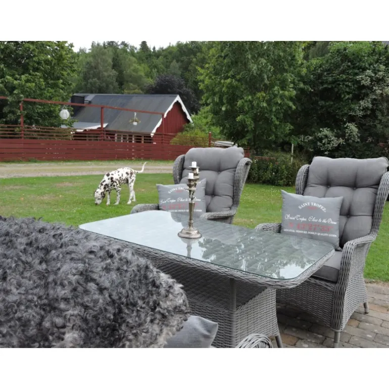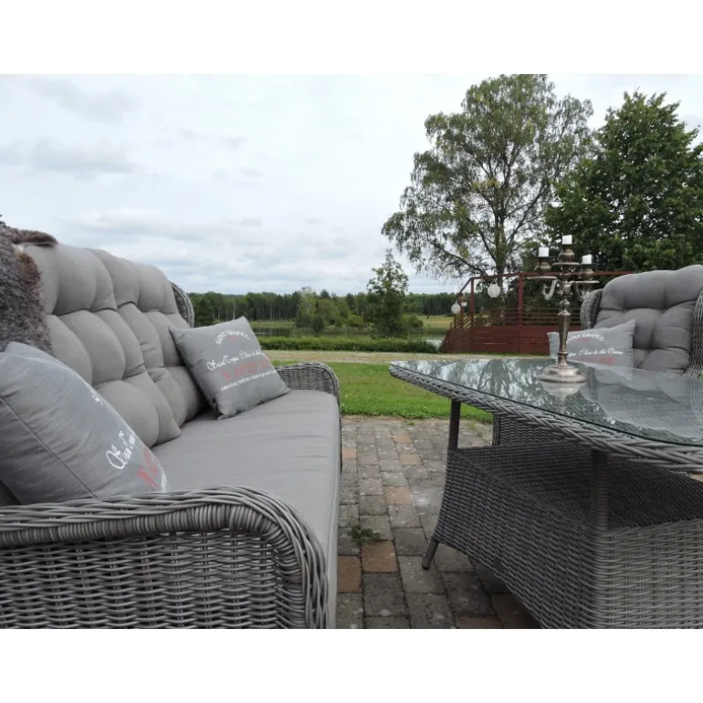 - Holdbart materiale: Lavet af UV-resistent kunstig rattan og aluminium.