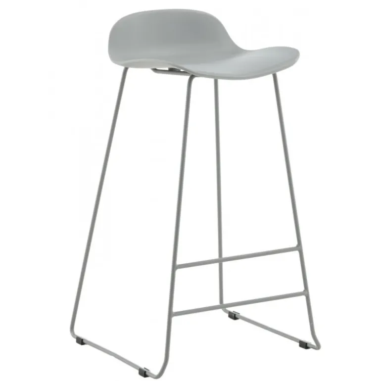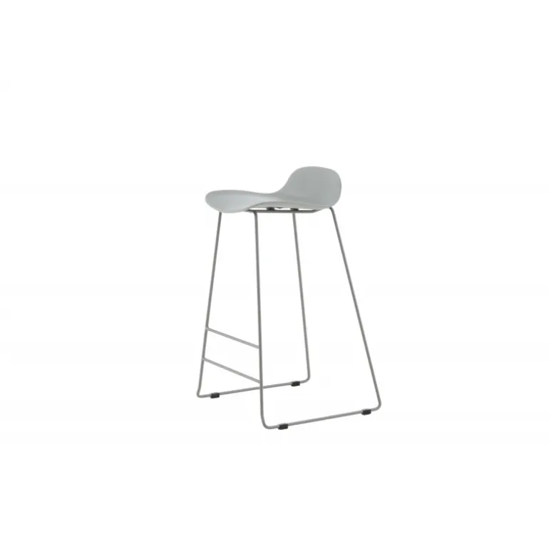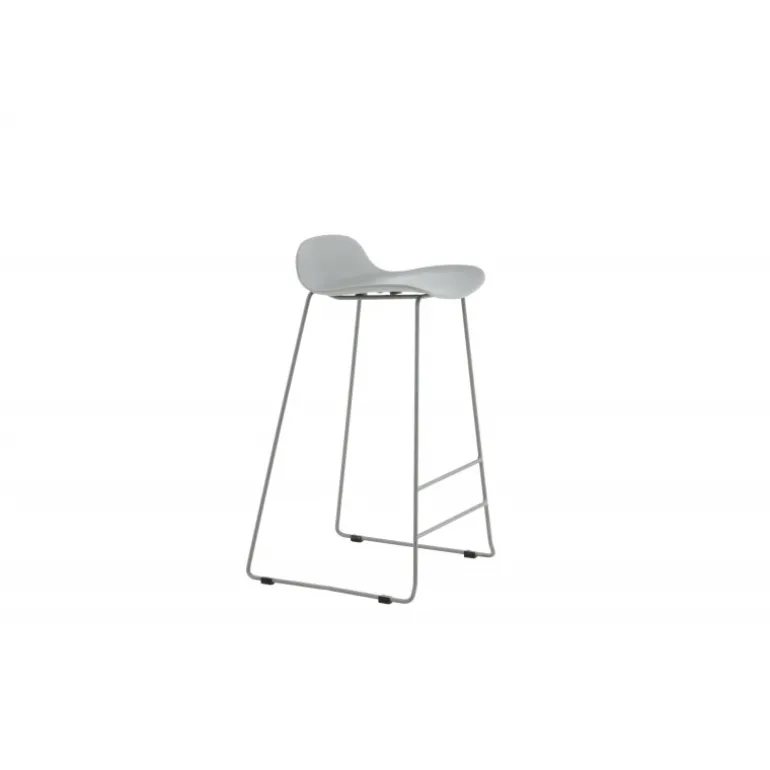 En stilfuld barstol i minimalistisk skandinavisk design fra Wave-serien vil helt sikkert blive et hit i hjemmebaren! Denne barstol kommer i en behagelig grå farve, med grå pulverlakeret metalstand, integreret fodstøtte for ekstra siddekomfort og lav ryg og sæde i grå fuldstøbt plast. Lettere samling er nødvendig. Plejeanvisning: Plastik er et taknemmeligt materiale at tørre og rengøre. Brug en fugtig klud og et mildt rengøringsmiddel til rengøring.