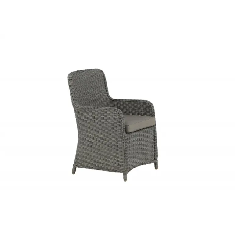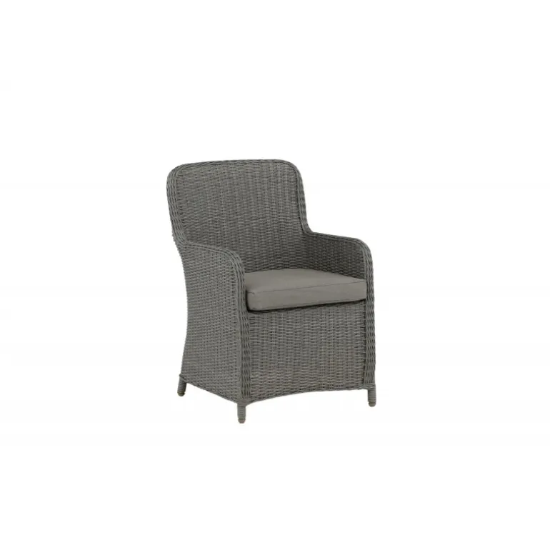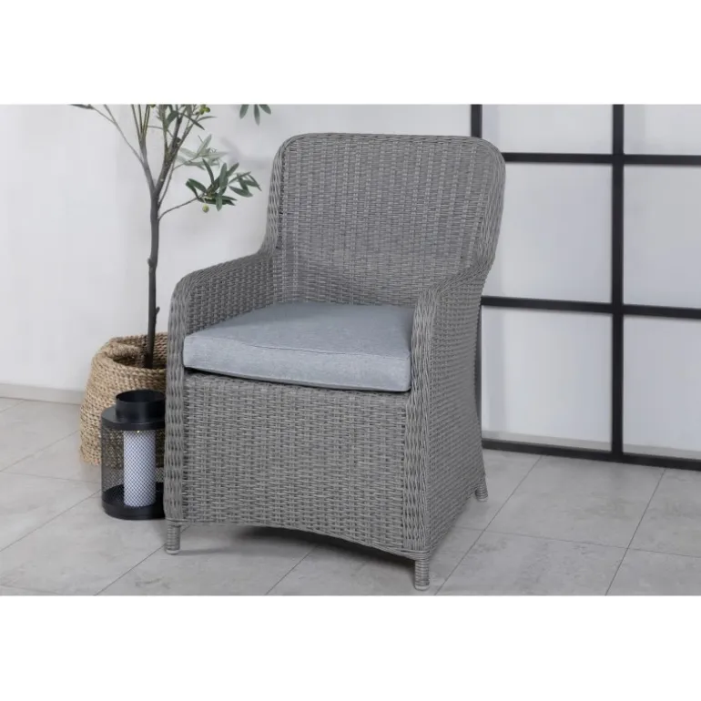 Skab en afslappende blikfang på terrassen denne sommer med denne spisestol fra Wembley-serien. Det stilfulde design og den lækre grå farve giver et moderne indtryk. Stolen er en ægte klassiker og passer ind i de fleste husholdninger. Med høje armlæn bliver stolen komfortabel at sidde i tæt på bordet. Sid behageligt og nyd dejlige måltider udendørs! Rådgivning om pleje: Konstrite er et plastmateriale, der er perfekt til vores skandinaviske klima. Materialet er UV-bestandigt og kan modstå vejr og vind. Det faktum, at det er UV-bestandigt, betyder, at møblerne ikke falmer, men vi anbefaler altid at opbevare møblerne under en møbelbeskyttelse eller ellers tørt og køligt for at forlænge levetiden.