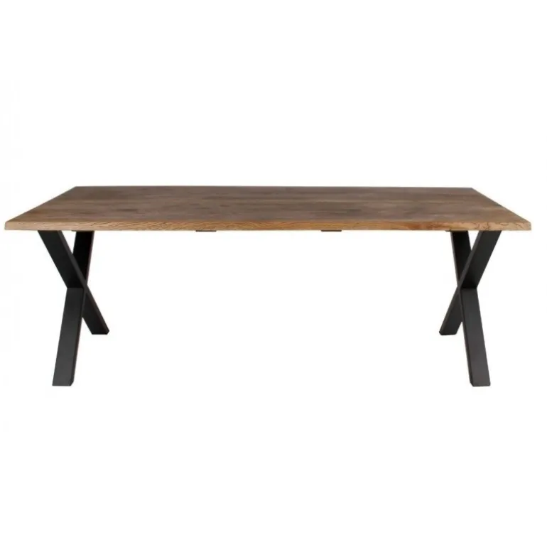 Er du til det rustikke trælook, og vil du ikke gå på kompromis med kvaliteten, så er dette yderst indbydende plankespisebord det ideelle valg. Bordpladen er udført i massive røgolierede egetræsplanker med naturligt bølgede, skrå kanter, som giver bordet et varmt og charmerende udtryk. De robuste skrå sortlakerede metalben sikrer, at bordet har en yderst stabil og robust konstruktion, ligesom de komplementerer egetræsplankerne på bedste vis. Et langtidsholdbart kvalitetsdesign, der emmer af patina.