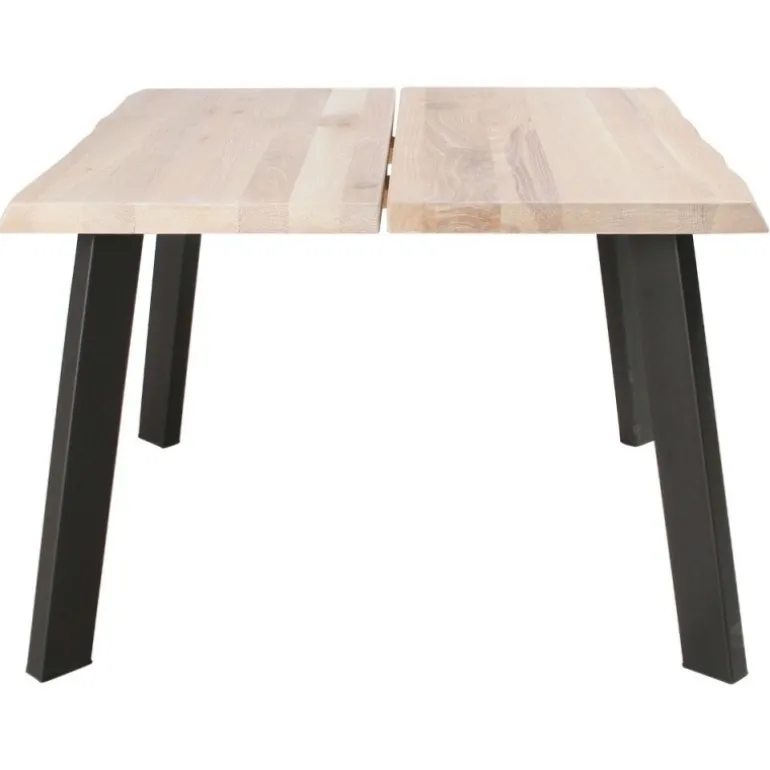 Er du til det rustikke trælook, og vil du ikke gå på kompromis med kvaliteten, så er dette yderst indbydende plankesofabord det ideelle valg. Bordpladen er udført i massive hvidolierede egetræsplanker med naturligt bølgede, skrå kanter, som giver bordet et varmt og charmerende udtryk. De robuste skrå sortlakerede metalben sikrer, at bordet har en yderst stabil og robust konstruktion, ligesom de komplementerer egetræsplankerne på bedste vis. Et langtidsholdbart kvalitetsdesign, der emmer af patina.