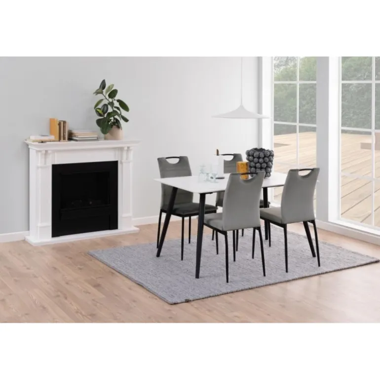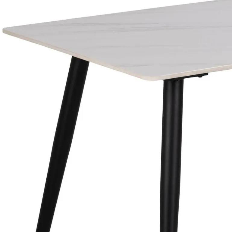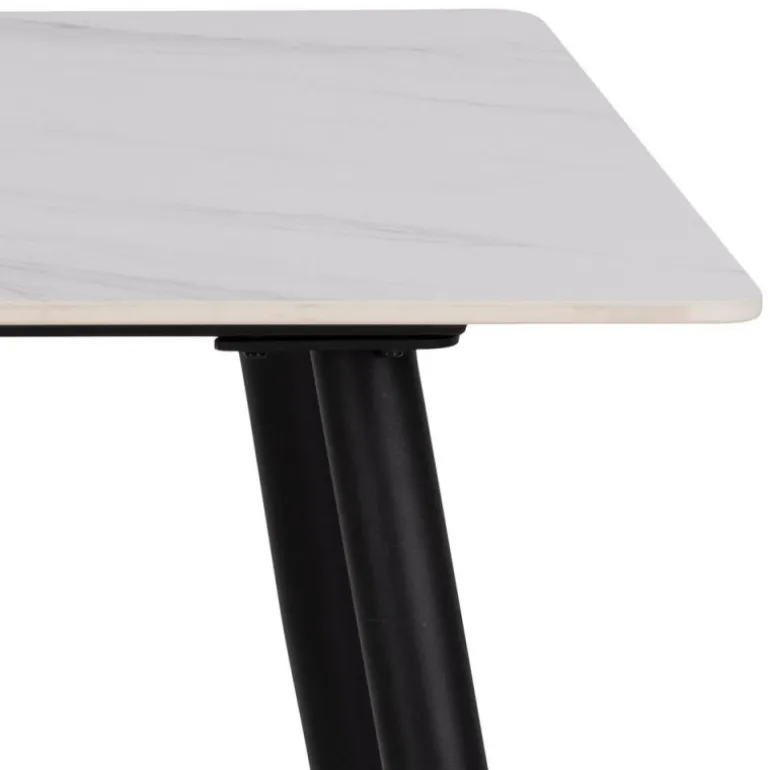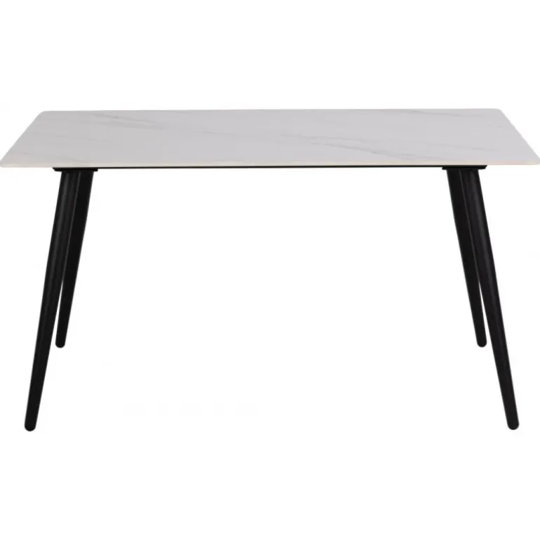 Wicklow spisebord bordplade keramik Lincoln mat hvid, 12 mm, stel metal pulverlakeret ru mat sort, L:140 B:80 H:75 cm