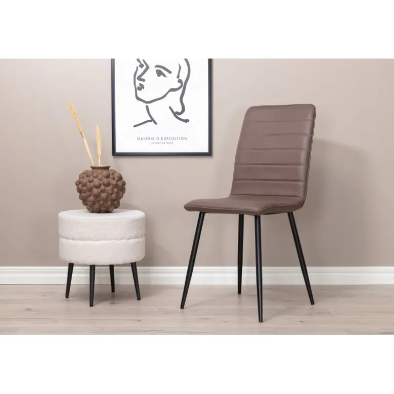 Som praktisk og iøjnefaldende vil Windu luksusstolen helt sikkert være en succes i hjemmets hjerte! Stolen har et lige nordisk design med et rustikt udseende i sin mørkebrune farve. Fremstillet af holdbar mikrofiber og jernbensben for at give dig et holdbart møbel, der holder over tid. Match med et lækkert spisebord og nyd hyggelige måltider i dit hjem! Plejeråd: Til daglig pleje anbefaler vi støvsugning. Hvis du vil tørre møblerne af, skal du bruge en mikrofiberklud i varmt vand. Tilføj gerne nogle pumper med midler beregnet til materialet og vrid kluden ordentligt.