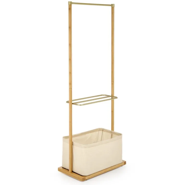Oplev den WU-31 Bøjle, en stilfuld og funktionel tilføjelse til dit hjem. Fremstillet af solid bambustræ, stof og pulverlakeret stål, er denne bøjle både robust og elegant. Med dimensioner på 60/35/166 cm og en naturlig/beige/guld farvekombination, passer den perfekt ind i enhver indretning. Ideel til at holde dit tøj organiseret og let tilgængeligt, samtidig med at den tilføjer et strejf af naturlig skønhed til dit rum.