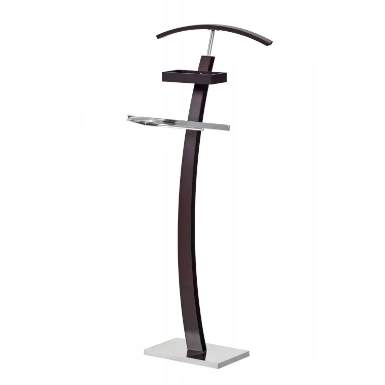 Opdag WU13 Stumtjener i wenge, perfekt til organisering af din garderobe. Denne stilfulde Stumtjener er fremstillet af bøjetræ og kromstål, hvilket sikrer både holdbarhed og elegance. Med dimensionerne 32/20/117 cm passer den til alle typer tøj, fra jakker til skjorter. Køb den nu og få styr på din garderobe med denne kvalitetsStumtjener.