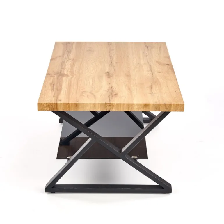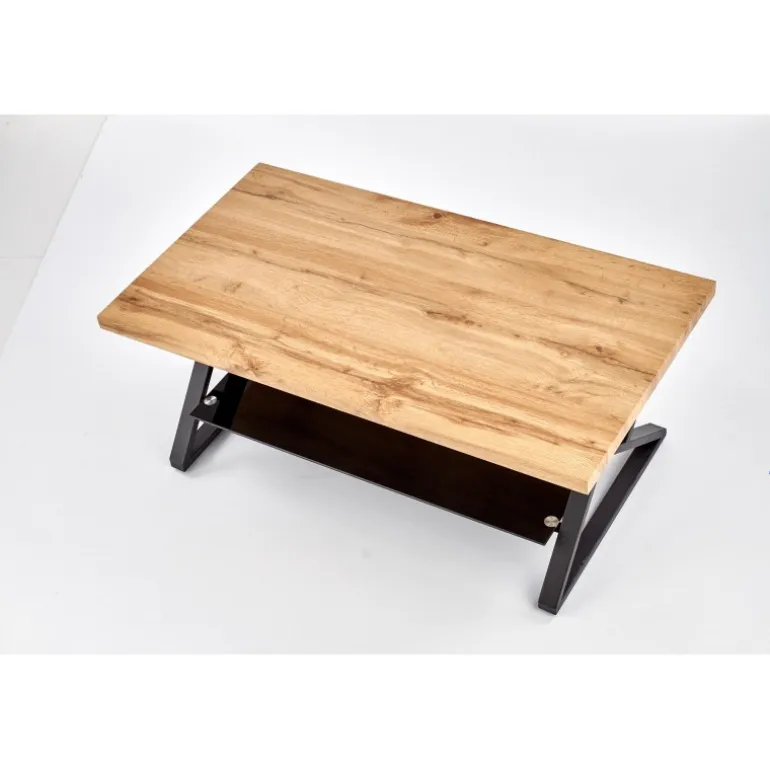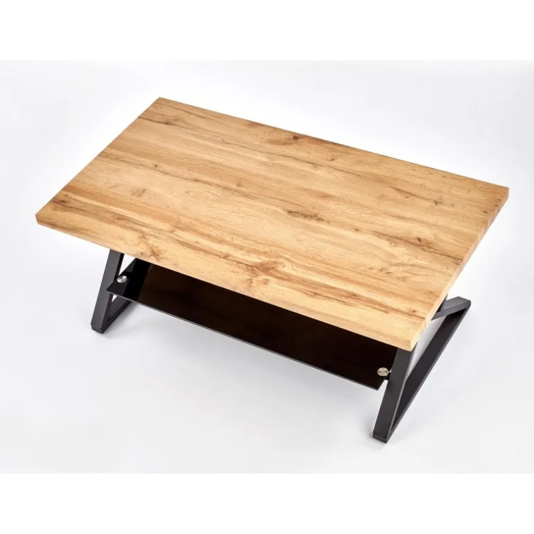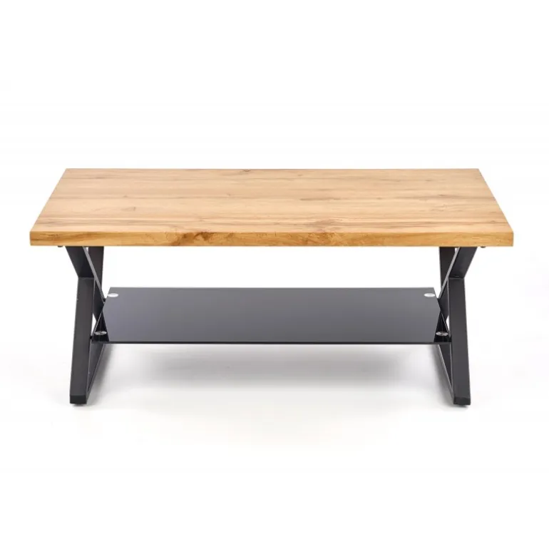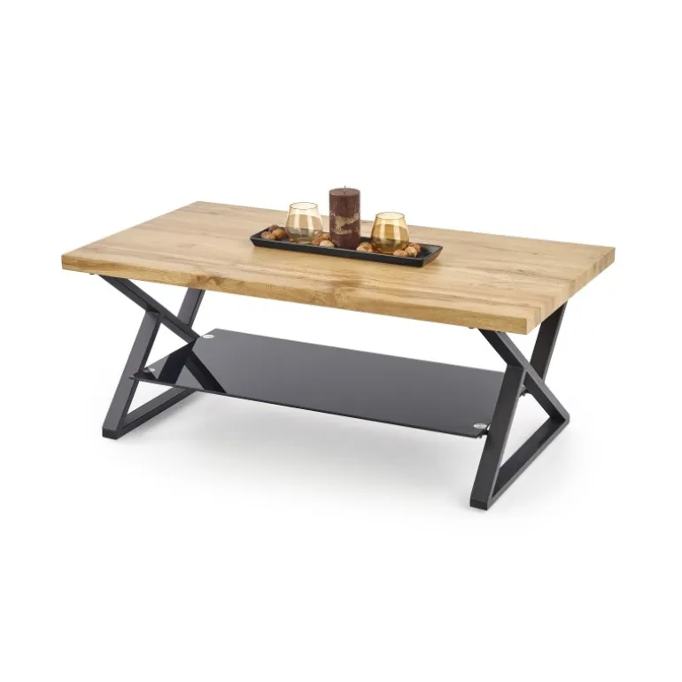 XENA rektangulær sofabord er den perfekte kombination af stil og funktionalitet til din stue. Med dimensionerne 110/60/45 cm passer det ideelt i de fleste rum. Bordpladen er fremstillet af lamineret MDF med en naturlig egetræsfinish, som giver en varm og indbydende atmosfære. Det Sorte pulverlakerede stål understel og de elegante glasdetaljer tilføjer et moderne touch, der komplementerer enhver indretning. Dette sofabord er både robust og æstetisk tiltalende, hvilket gør det til et must-have møbel.