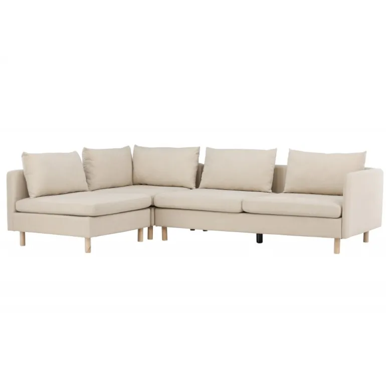 Oplev komfort og funktionalitet i perfekt harmoni med vores hjørnesofa, Zero. Denne vidunderlige sofa i en varm beige nuance er lavet af højkvalitets polyester, hvilket giver den en følelse af luksus og holdbarhed. Med plads nok til alle er Zero det ultimative møbel til sociale sammenkomster og afslappede øjeblikke. Sofaen er elegant hævet af sine smukke træben, hvilket giver den et moderne og luftigt udseende. Uanset om du vil krølle dig sammen med en bog, se din yndlingsfilm eller invitere venner og familie til en hyggelig aften, giver Zero det perfekte sted at slappe af og nyde. Skab en følelse af ro i dit rum med Zero hjørnesofaen. Dens slanke design og komfortable siddepladser gør den til et uundværligt møbel i dit hjem. Få den afslapning og harmoni, du fortjener, med Zero – den ultimative hjørnesofa til dit hjem.