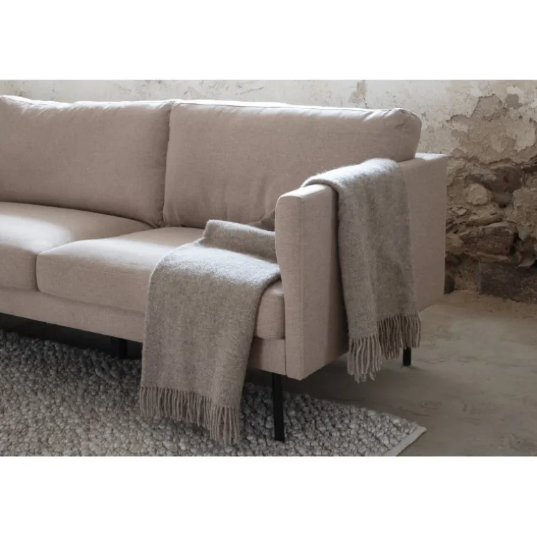 Med Zoom 3 personers sofa behøver du ikke gå på kompromis mellem stil og komfort! Denne sofa tilbyder den perfekte balance mellem afslapning og socialisering. Udført i en lækker beige/brun farve og stilfulde smalle ben i sort metal. De lige nordiske former, den moderne stilrenhed og den bløde polstring giver dig en indbydende sofa, der holder over tid. Ingen hjem er komplet uden den perfekte sofa! Sofaens dimensioner: Bredde: 262 cm, dybde: 54 cm, højde: 80 cm. Plejeråd: Sørg for, at dine møbler ikke står direkte i sollys. Brug tekstilspray til at imprægnere tekstilet, før du begynder at bruge det, det vil også gøre eventuel snavs og pletter lettere at fjerne i fremtiden. Fjern pletter med det samme, gnid ikke, men forsøg at suge dem forsigtigt op med en klud.