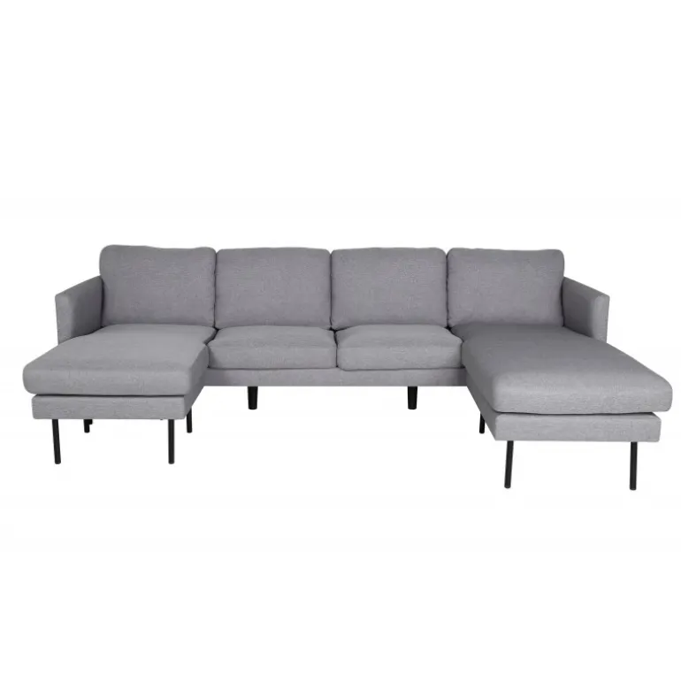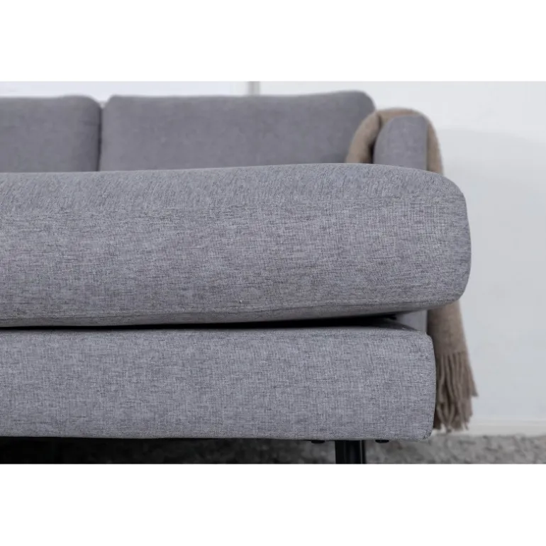 Skab et indbydende blikfang i stuen med en hyggelig sovesofa fra Zoom-serien. Sofaen har en grå farve i blødt stof og et charmerende designsprog, der hurtigt gør denne sofa til en komfortabel favorit. Designet er velovervejet med to chaiselonger, lige nordiske former og stilfulde smalle ben i sort metal. Saml familien eller bred dig ud alene – giv tid til værdifuld afslapning! Plejeråd: Sørg for, at dine møbler ikke står direkte i sollys. Brug tekstilspray til at imprægnere stoffet, før du begynder at bruge det; det vil også gøre snavs og pletter lettere at fjerne i fremtiden. Fjern pletter med det samme, gnid ikke, men forsøg at suge forsigtigt op med en klud.